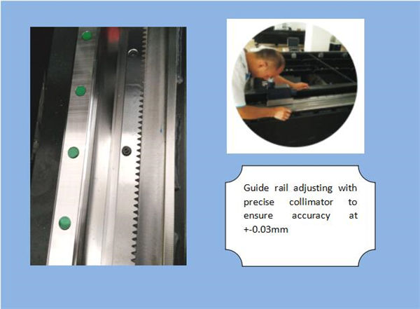 | Nafn:Nákvæmar línulegar leiðbeiningar Háþróað klippakerfi, leysirafl og servóhreyfing henta hvort öðru fullkomlega, flutt inn mikil nákvæmni gír og rekki drifkerfi, skiptanlegt tvöfalt vinnuborð til að tryggja meiri vinnsluhraða og nákvæmni. |